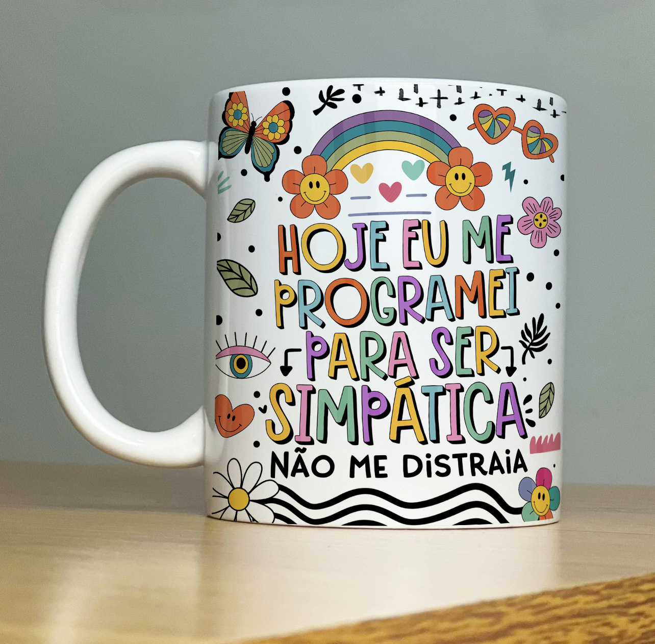 Caneca Personalizada de Porcelana Hoje me programei para ser simpática Não me distraia